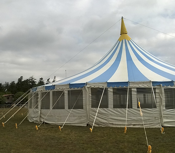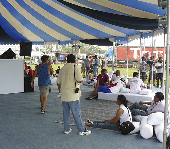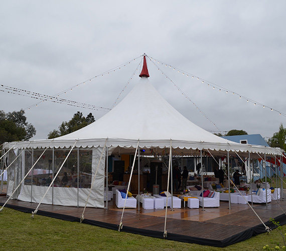 Con 22 m de diámetro, cubre una superficie circular de 390 m2. Posee un columna central que brinda una altura máxima de 9 m útiles en el interior. Altura mínima de 3m. Sus laterales son rebatibles y tiene en su perímetro columnas cada 1,5 m, totalizando en 41 columnas de soporte.