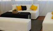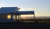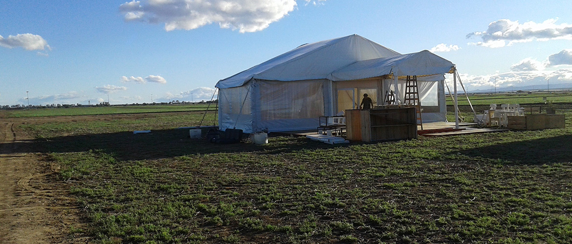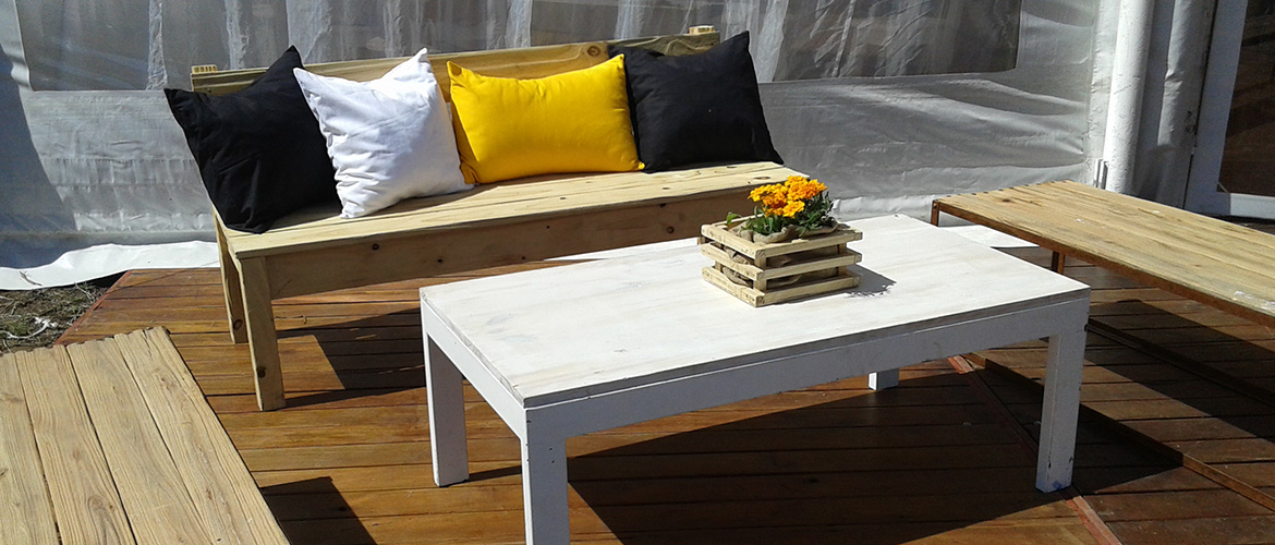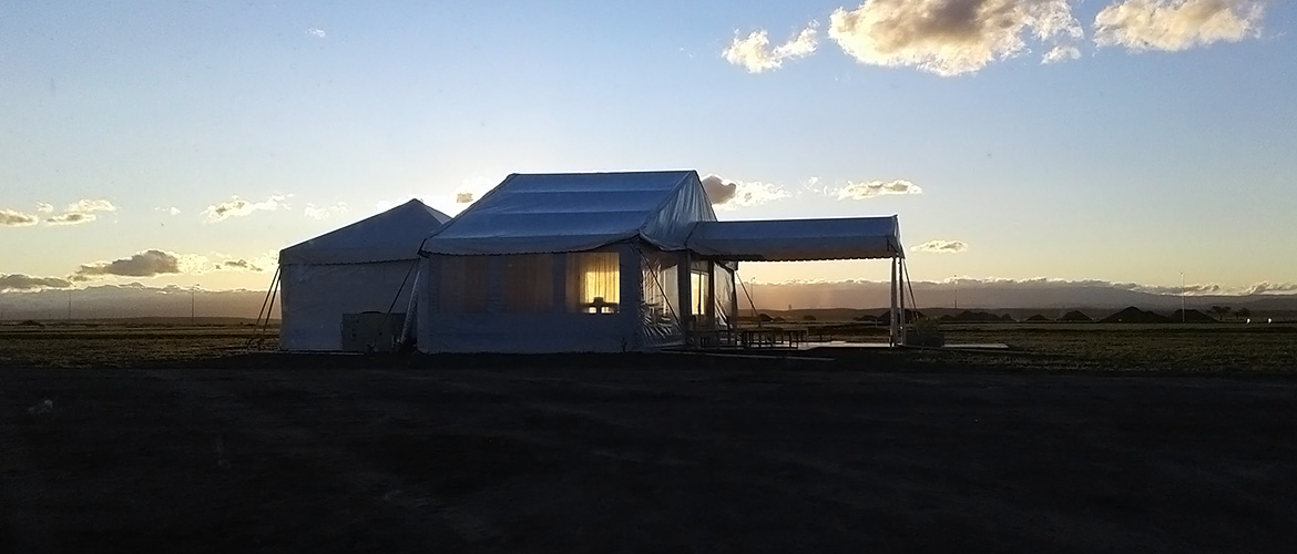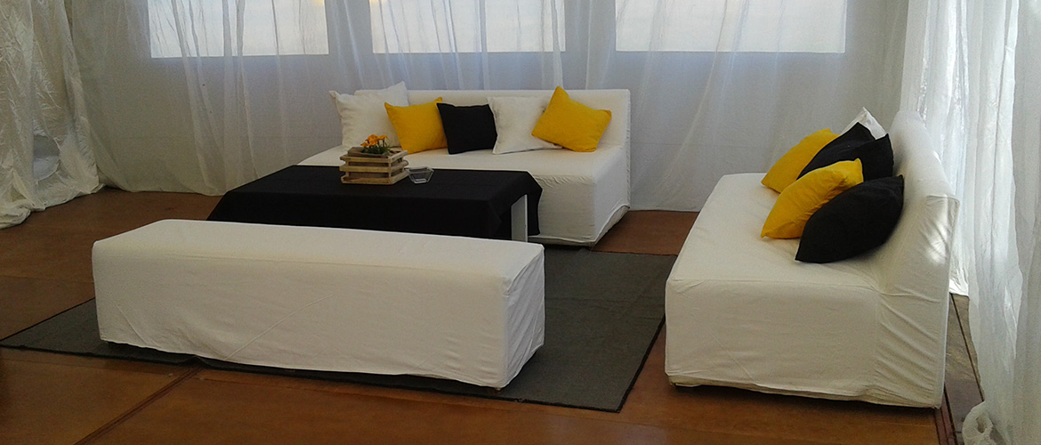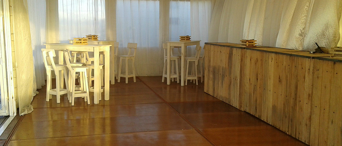 El proyecto contó con una carpa de 12 x 5 con piso, además de un cielo raso y un cortinado. Para jerarquizar el evento se agregó una marquesina de ingreso junto a un deck de 40 m2 más juegos de livings y ambientación.