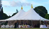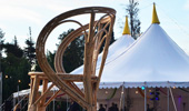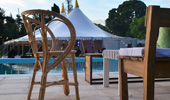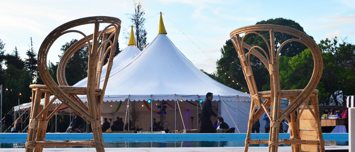 Se diseñó una carpa especialmente para este evento, a la que llamamos Triana, la misma cuenta con un doble Mastro con piso y deck perimetral y de ingreso. La carpa TRIANA se complementaba con una carpa cocina de 6 x 10 m, una marquesina unía ambas carpas. El proyecto se completó con una carpa para cocina, baño y una cuidada ambientación y decoración. Carpa Triana doble mastro con piso y deck perimetral. Ingreso Deck, carpa cocina 6 x 10 m con piso, marquesina de conexión carpa cocina con carpa principal. Baño Premium Room, juegos de living, ambientación y decoración.